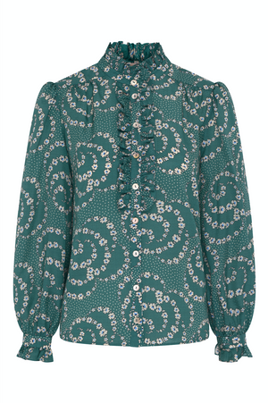 This Irina blouse is adored for its pretty bohemian details and effortless elegance. It is cut from airy silk-cotton fabric in custom daisy chain print, has a slightly loose fit and a romantic pie-crust collar. Wear it with your favourite denim or Vilshenko Ava skirt.