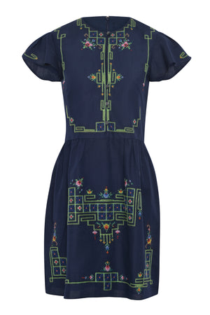 Vilshenko is synonymous with Vintage Folk chic, but when you twist a mini dress with short sleeves sleeves it gets a distinctly modern feel. It's made from cotton and linen-blend and finished with the most delicate cross stitch embroidery around the body. Style it with a thin belt to further cinch the waist.