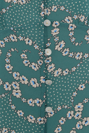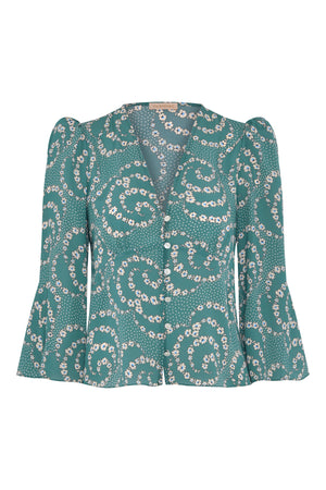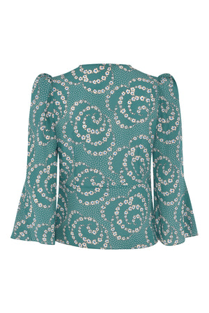 Folk daisy print decorating Vilshenko Tanya blouse is beautifully detailed with pearl buttons. It's made from crepe de chine silk that's gathered on the shoulders, fitted to create elegant silhouette and cut to have flared 3/4 sleeves. Wear yours with the matching Valentina skirt.