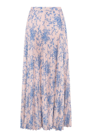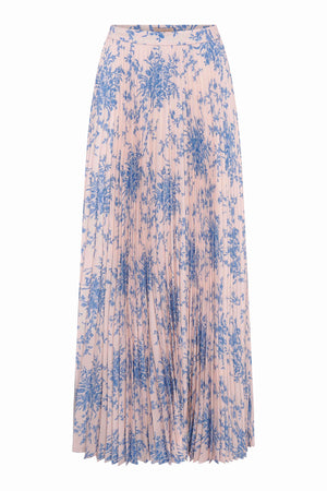 Elegant long skirt is dappled with vintage flower ornaments. It's cut from lightweight crepon and pleated throughout to create swishy movement. Style yours with the matching blouse and Vanessa cardigan.